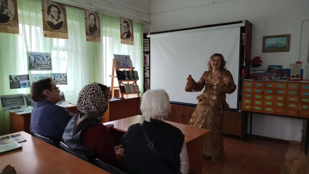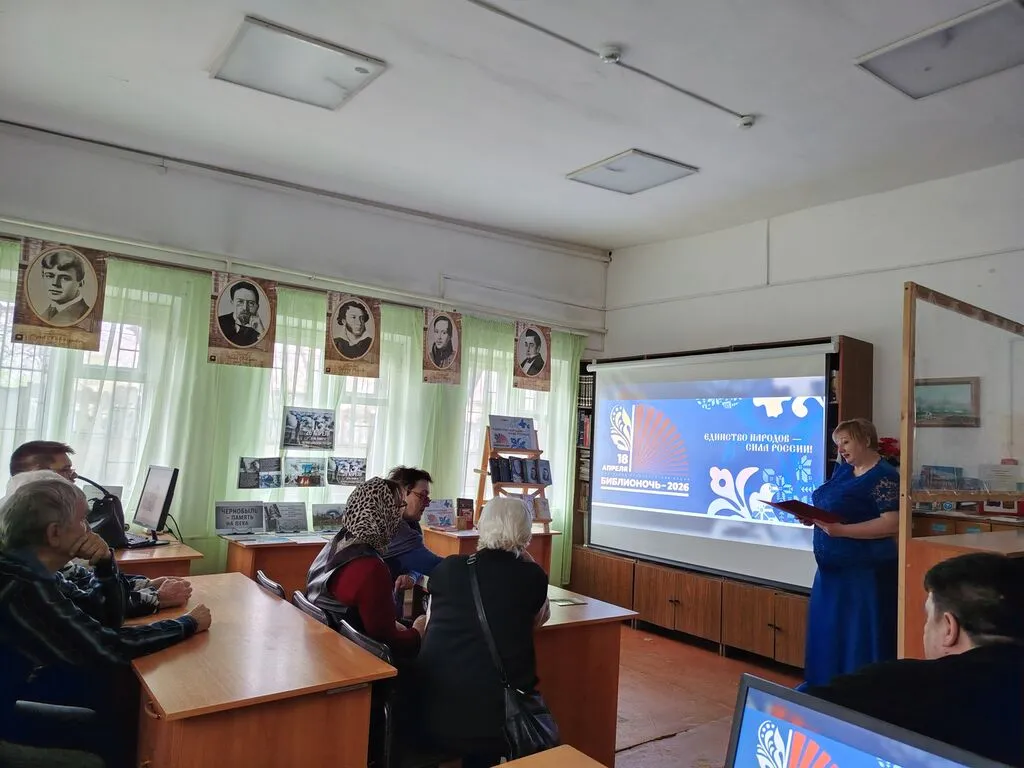 18 апреля отдел обслуживания провёл к ежегодной Всероссийской акции «Библионочь-2026»устный журнал « Многонациональное разноцветье». В этом году мероприятие прошло под девизом «Единство народов — сила России!», что подчёркивает богатство культурного и исторического наследия нашей страны.В приветственном слове библиотекарь рассказала гостям об истории акции, которая впервые прошла в 2012 году и с тех пор стала значимым событием для библиотечного сообщества и всех любителей книги. Культура и искусство - это тот цемент, который объединяет наши народы на протяжении многих веков. С целью укрепление межкультурного диалога, гостям рассказали о традициях, праздниках, обрядах разных народов России. Участникам было предложено поучаствовать в мастер – классе создания игрушек «Национальные костюмы нашей страны». Трогательные строки юкагирского поэта Николая Курилова «Я узнал, что у меня есть огромная семья», прочитанные Плодущевым Георгием, были подхвачены всеми присутствующими. Активное обсуждение вызвала игра- загадка «Угадай что скрыто на памятниках». Изюминкой мероприятия стало танцевальное выступление Плодущевой Оксаны, участницы творческого коллектива «Хабиби» с сольным исполнением восточного танца. Современная библиотека неотрывно, связана с кинематографом. Участникам мероприятия было предложено угадать изображения героев кинофильмов и актёров их исполняющих. Многие гости делились воспоминаниями об их проживании в других регионах России и даже других странах, демонстрировали принесённые с собой семейные фото. Дружеское общение продолжилось за кружечкой горячего чая.