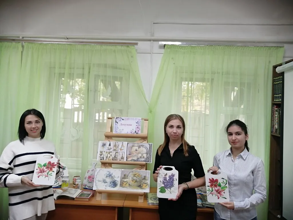 16 апреля прошёл мастер – класс «Украсим досточку в стиле «Декупаж» в клубе «Додельники» Библиотекарь познакомила присутствующих со стилем «Декупаж», рассказала о том, что это техника декорирования предметов с помощью вырезанных из бумаги изображений, которые приклеивают к поверхности и покрывают лаком для защиты. Название пришло от Французского слова decoupage –«резка». Участницам показали видео о том, что можно украшать в этом стиле. На выставке посмотрели иллюстрации и готовые образцы работ. Руководитель клуба рассказала пошагово, как можно украсить досточку и сделать оригинальный предмет декора своими руками для себя или на подарок. Затем участники познакомились с техникой безопасности по работе и приступили к выполнению. Девочки подобрали салфетки по своему вкусу и украсили свои досточки. Позитивная атмосфера и творчество помогли создать красивые работы.