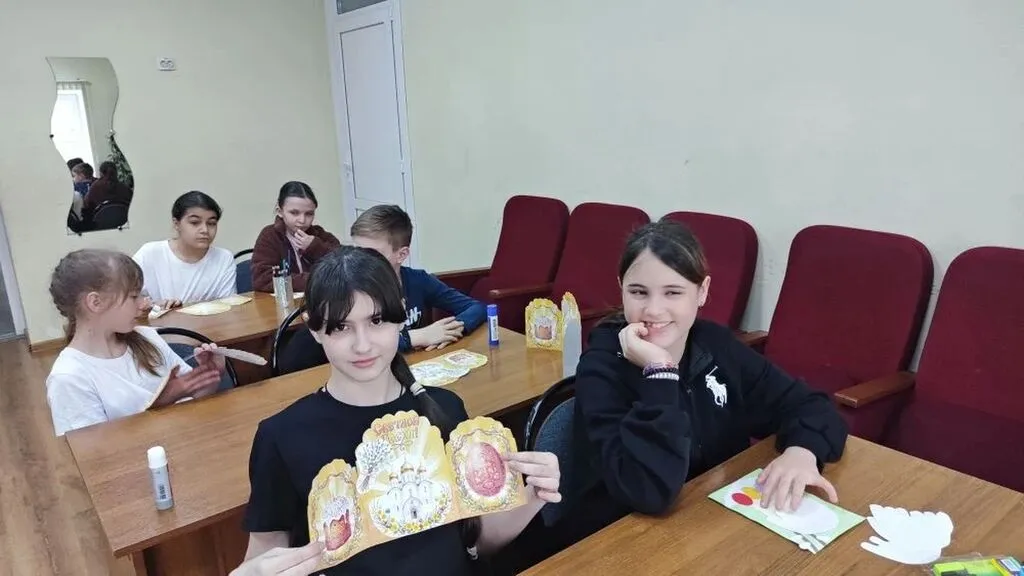 28 апреля 2026 года библиотека с. Правокумского для членов клуба « Хозяюшка» прошла творческая мастерская «Пасхальная радость». Ребятам рассказали о традиции празднования Пасхи, об истории светлого христианского праздника. В завершении мероприятия своими руками с помощью цветной бумаги, картона, изготовили пасхальные открытки и подарили свои поделки волонтерской группе «Правокумочка для Своих». Этот жест стал не просто подарком, а символом единения и заботы о близких, позволив каждому участнику ощутить радость от сделанного доброго дела. В мероприятии приняли участие 10 человек.
